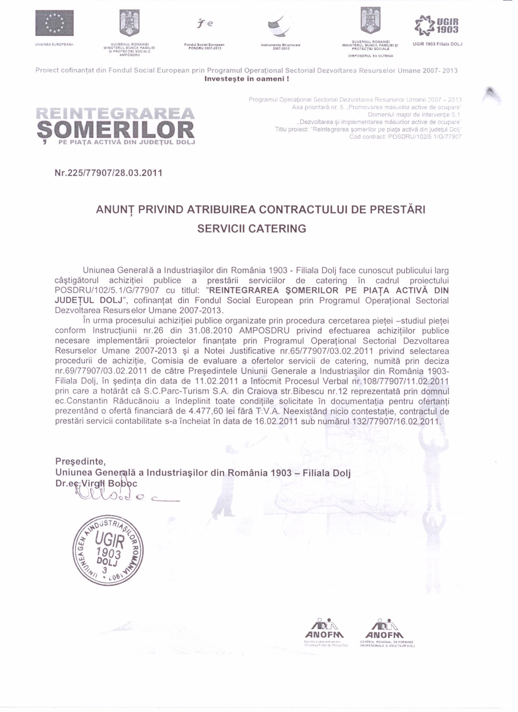 - Anunt - Atribuire contract servcii de catering Document publicat: 28.03.2011